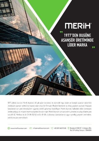 karşılamak için yeni teknolojilerin ışığında sürekli gelişmeyi hedefleyen Merih Asansör, kaliteden ödün vermeyen